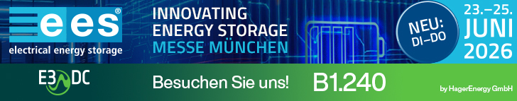 Die ees Europe findet vom 23. Juni bis 25. Juni 2026 im Rahmen von The smarter E Europe in der Messe München statt. Als wichtigste Fachmesse für solare Speicherlösungen ist die ees Europe für E3/DC das Messehighlight des Jahres. Wir sind wie in den vergangenen Jahren am Stand B1.240 präsent und werden viele innovative Speicher- und Ladelösungen vorstellen, mit denen die Energiewende in allen Gebäudeklassen gelingt.